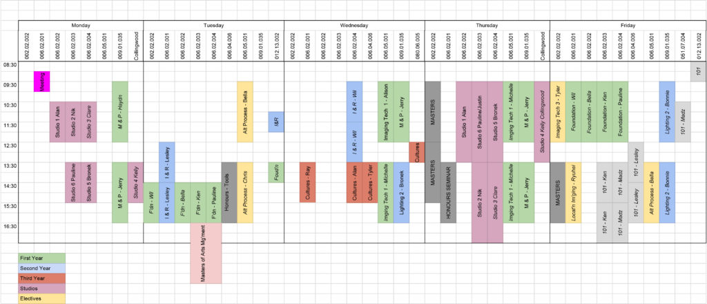 Semester 1 2019 - working timetable for the RMIT School of Art photography discipline